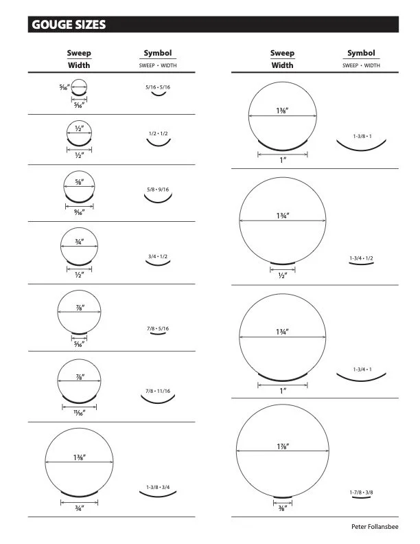 CHISELS- Narrow chisel for the till trenches - Peter uses a 5/16” and a wide paring chisel, maybe 1”-or 1 1/2”